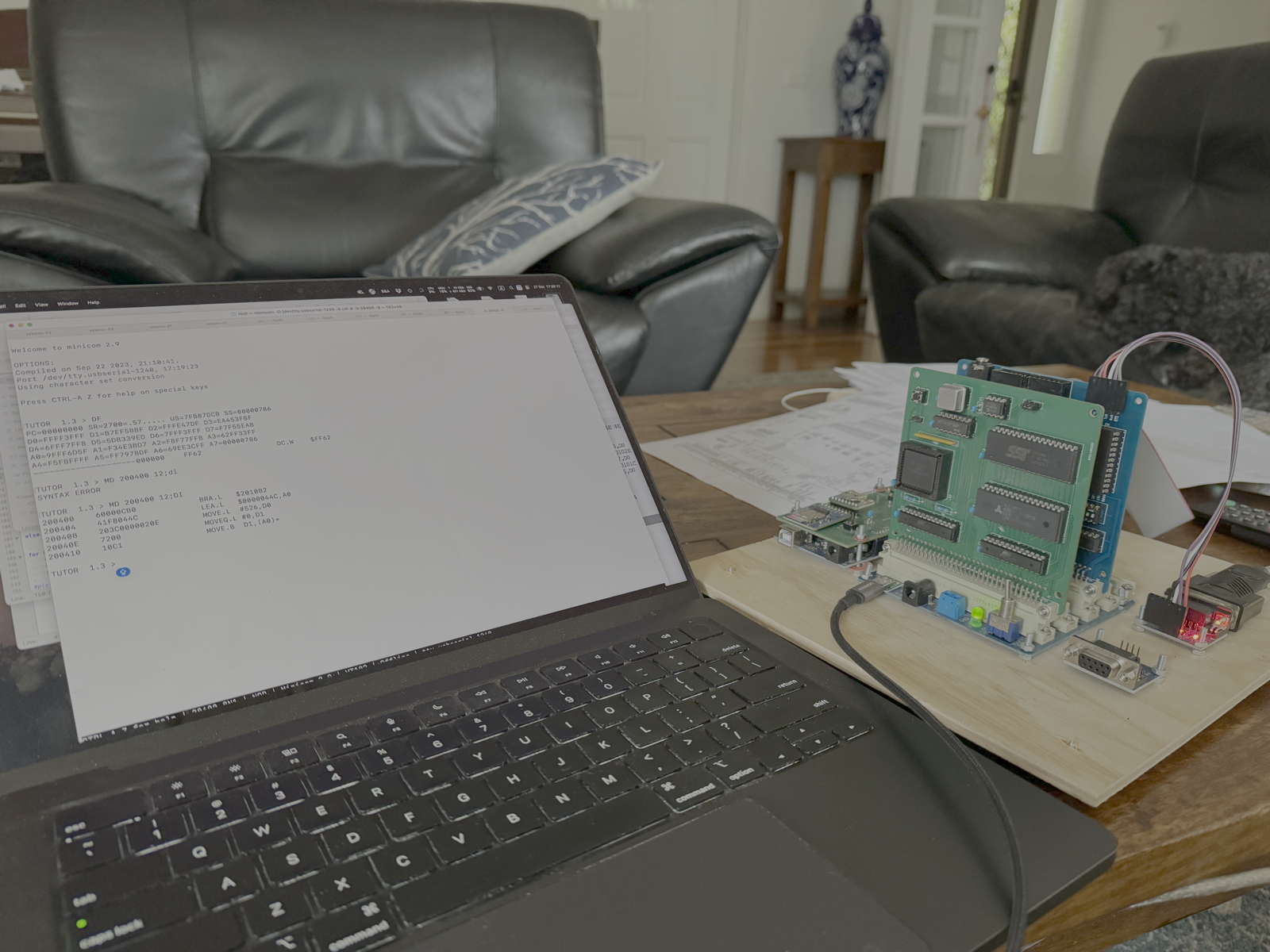 Pretty excited to finally get something working with the MECB I/O using a 68008. It's a really basic board with 512K RAM and 512 K ROM. I managed to get the Motorola Tutor monitor running on it via the MECB Motorola I/O card (so far the only card I've tested).