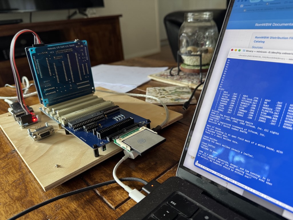 Running Zork 1 on the MECB Z80 via CP/M loaded up using an early prototype of the Compact FLASH to IDE adapter and via the MECB IDE interface card