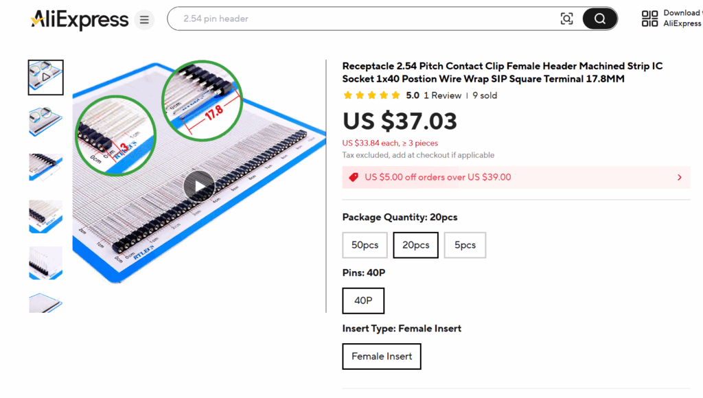 As you can see, these are just like your usual machined round hole socket header strips, but instead, they have wire-wrap length square pins, which are nicely suitable for wire wrapping.