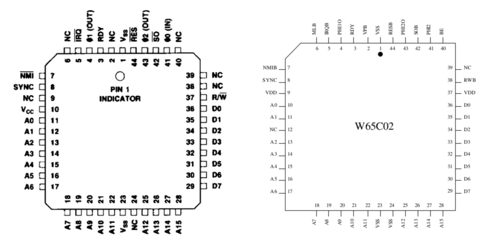 Now, there’s one important thing to note. The pin-out of the original 6502 PLCC package CPU chips, differs from WDC’s W65C02 PLCC pinout.